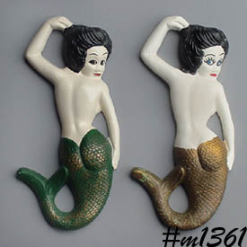 #m1361 - CHALK WARE -- PAIR OF MERMAID PLAQUES
